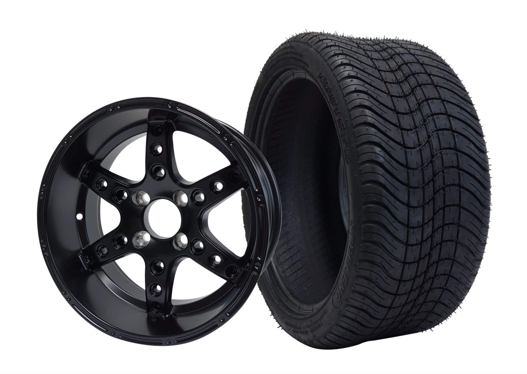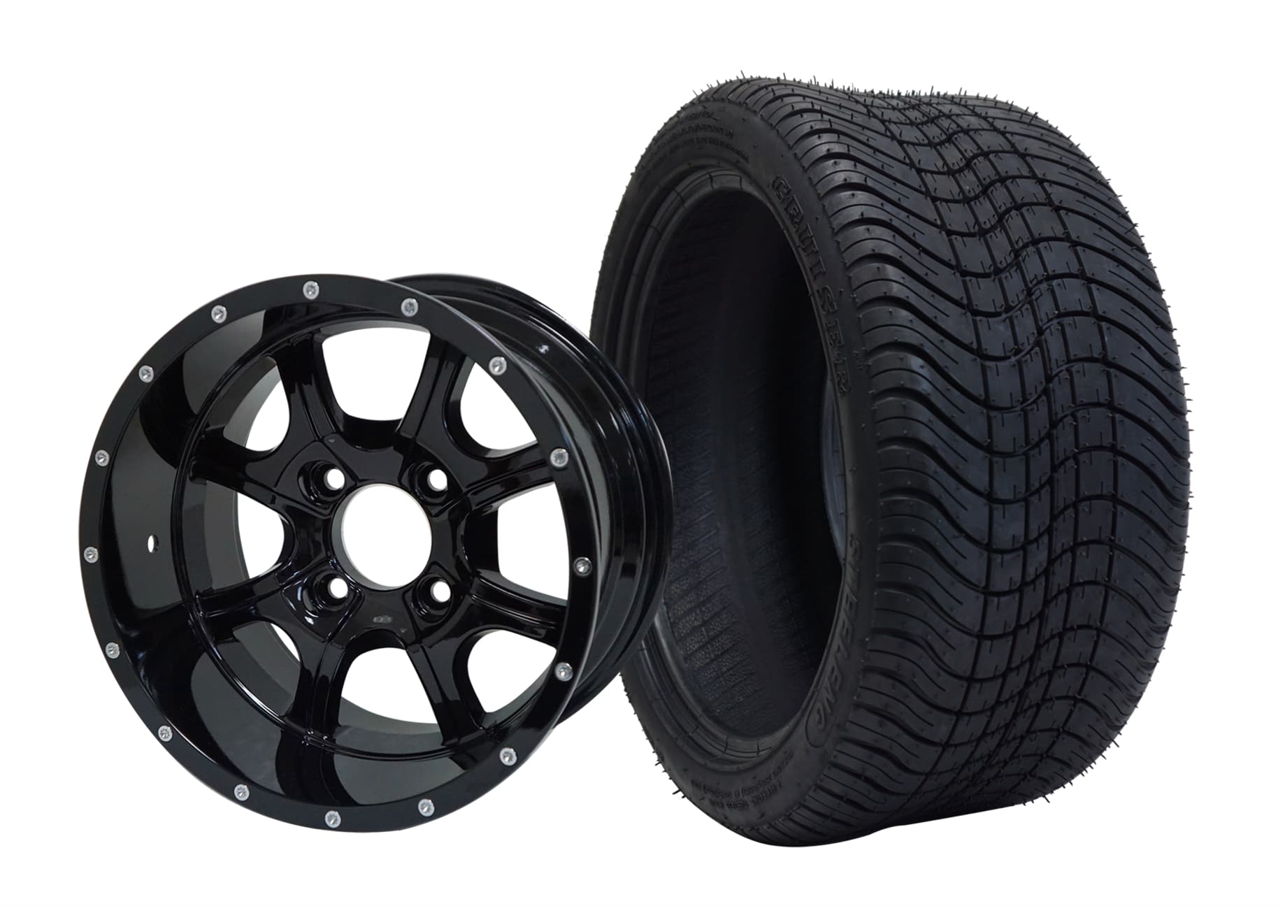 BNDL-TR1403-WH1427-LN0005-CC0002 – SGC 14″ Rally Glossy Black Wheel – Aluminum Alloy / STEELENG 23″x10″-14″ All Terrain Tire DOT approvedIn Stock