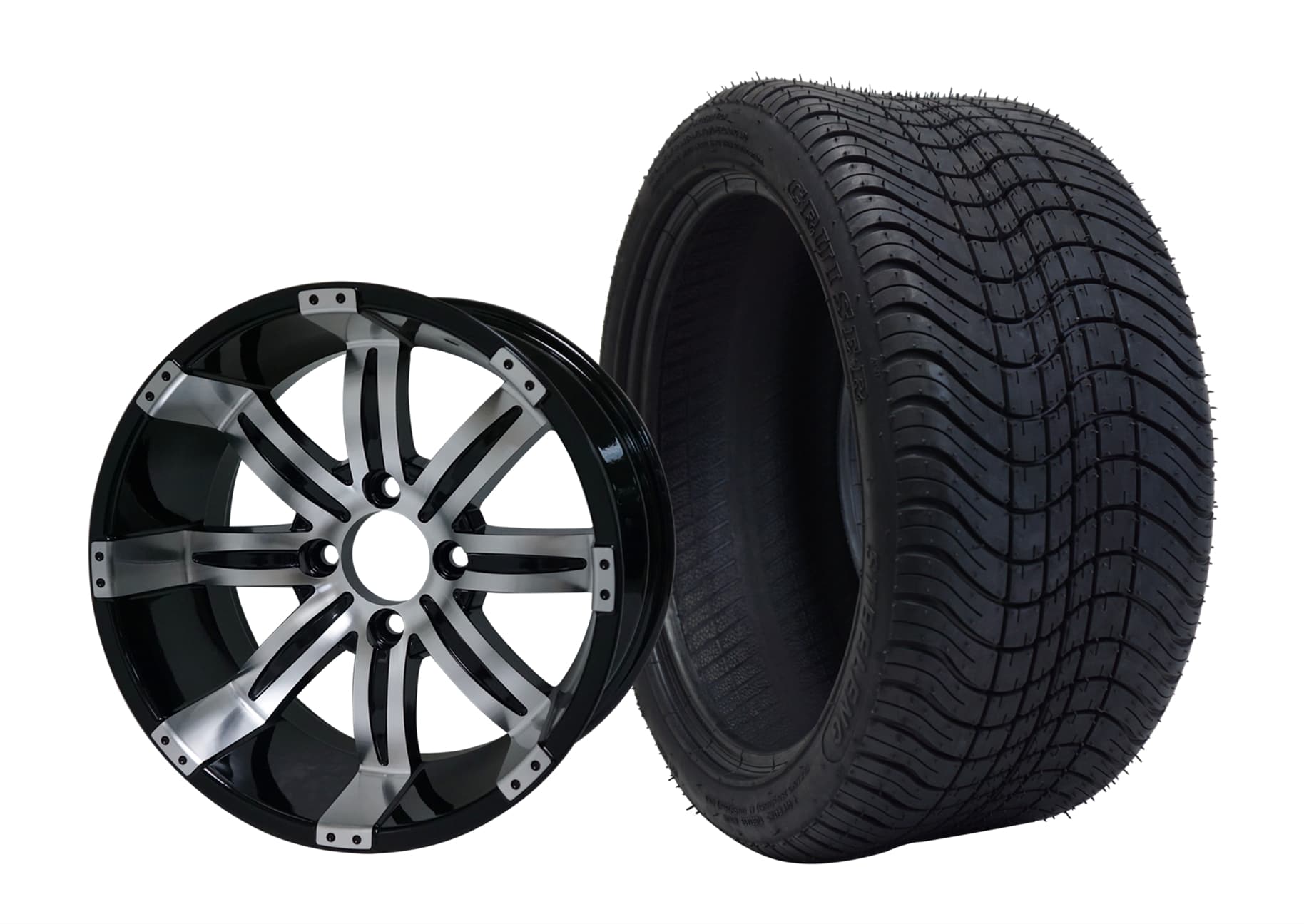 BNDL-TR1403-WH1426-CC0001-LN – SGC 14″ Rally Machined/Black Wheel – Aluminum Alloy / STEELENG 23″x10″-14″ All Terrain Tire DOT approvedIn Stock