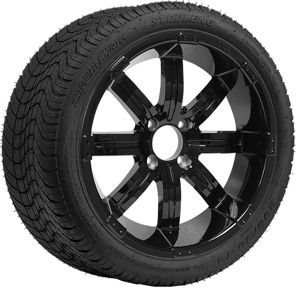 BNDL-TR1403-WH1425-CC0002-LN – SGC 14″ Lancer Glossy Black Wheel – Aluminum Alloy / STEELENG 23″x10″-14″ All Terrain Tire DOT approvedIn Stock