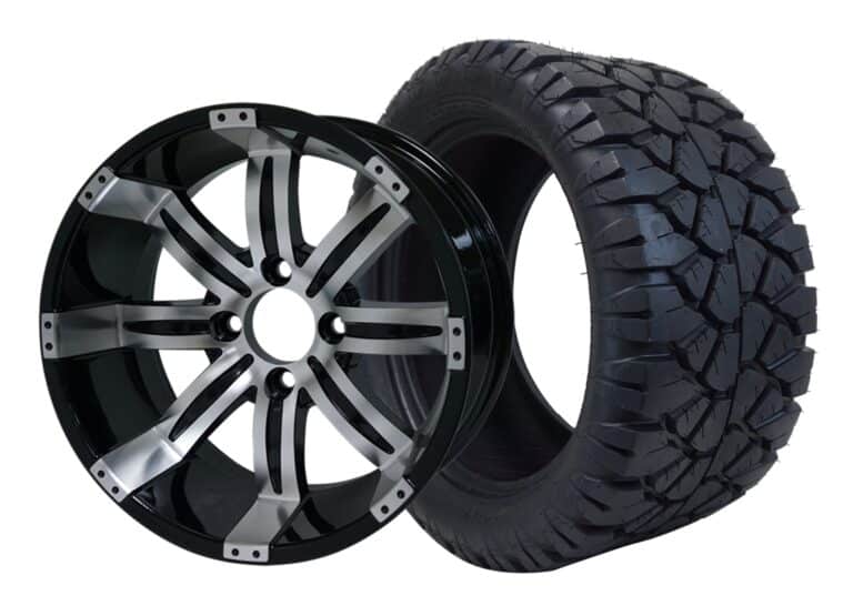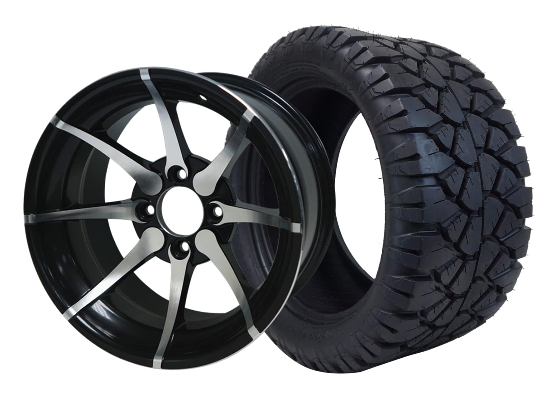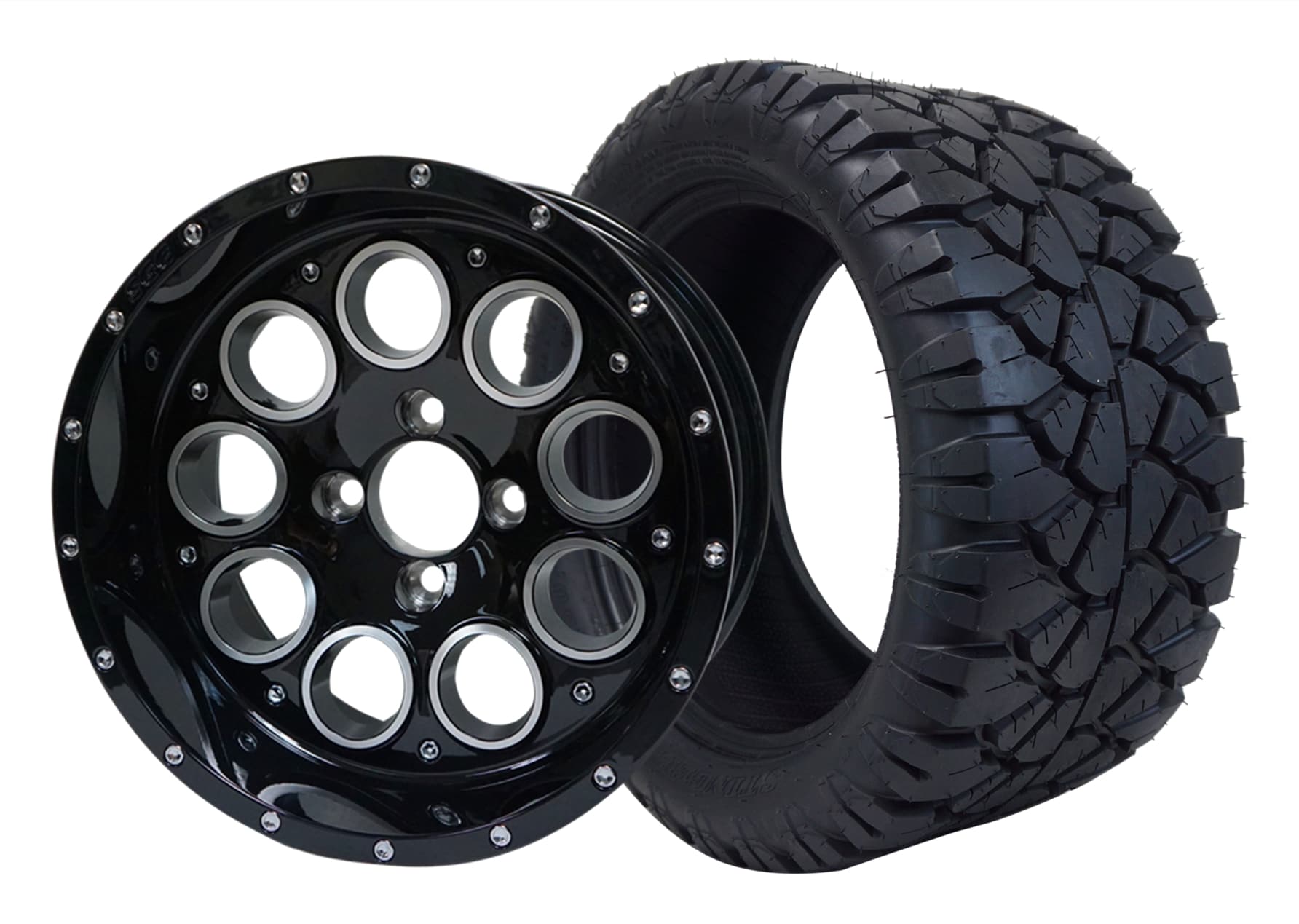 BNDL-TR1405-WH1402-CC0001-LN – SGC 14″ Kraken Machined/Black Wheel – Aluminum Alloy / STEELENG 23″x10.5″-14″ STINGER Hybrid AT Tire DOT approvedIn Stock