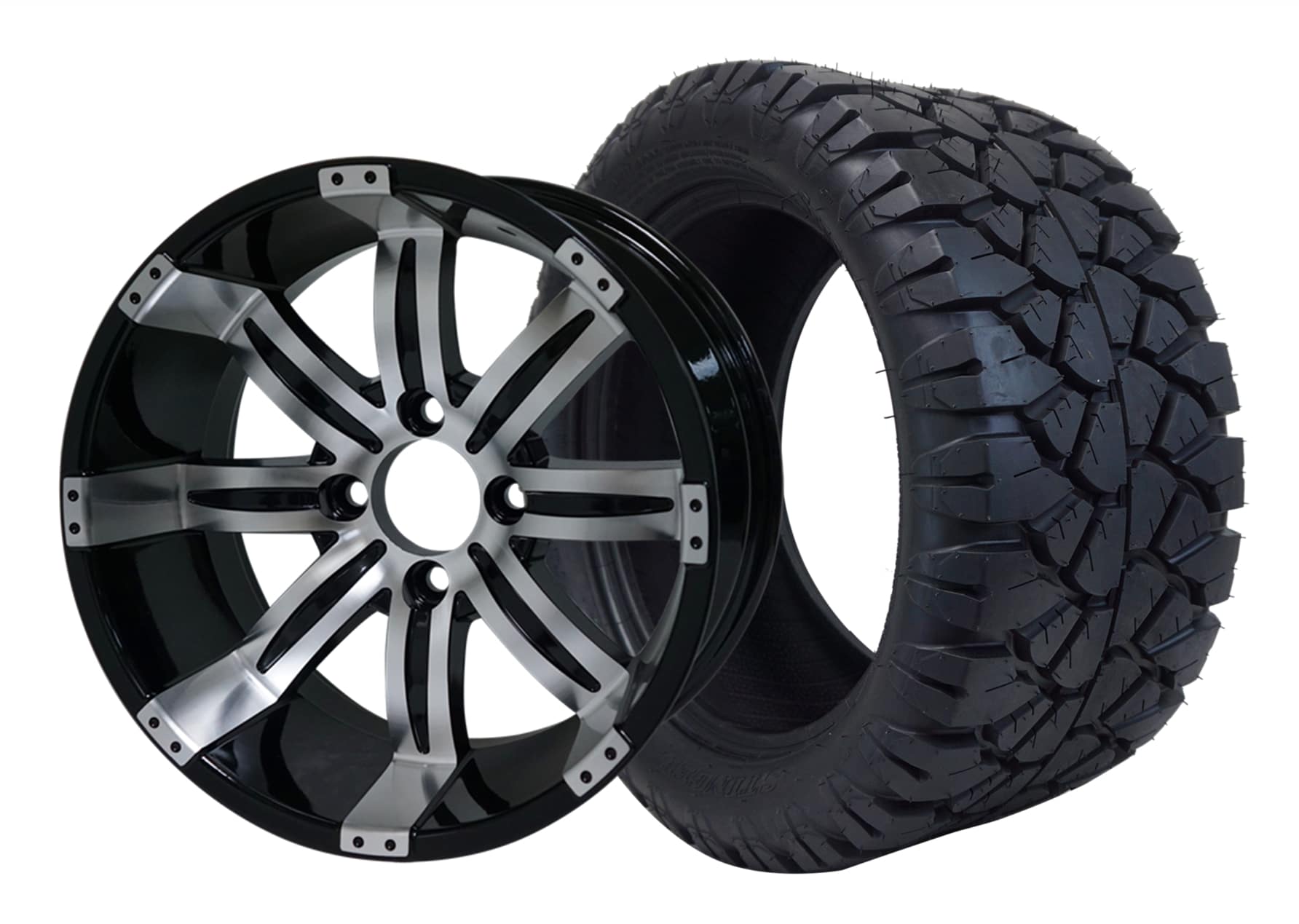 BNDL-TR1405-WH1413-CC0001-LN – SGC 14″ Vampire Machined/Black Wheel – Aluminum Alloy / STEELENG 23″x10.5″-14″ STINGER Hybrid AT Tire DOT approvedIn Stock
