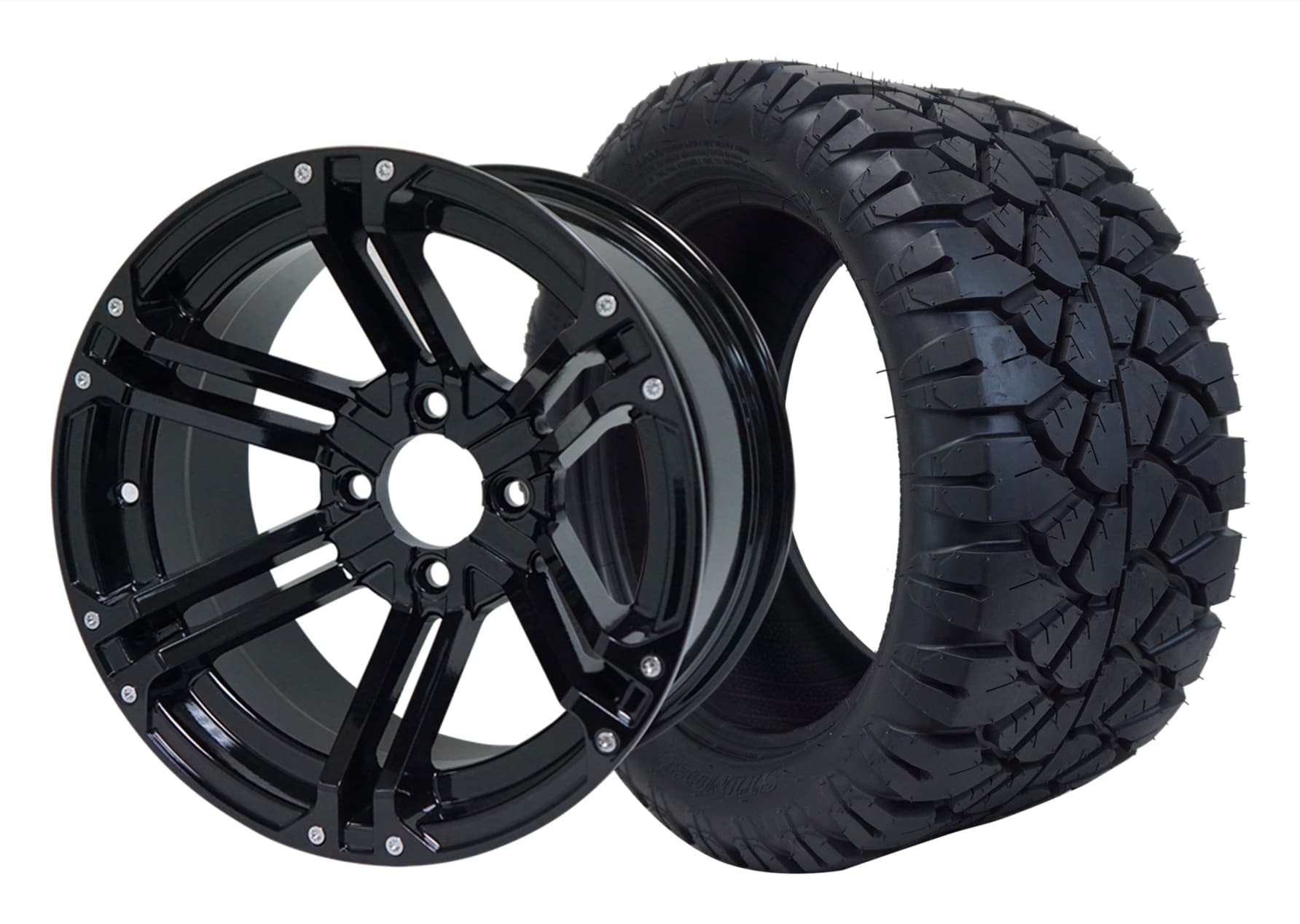 BNDL-TR1405-WH1414-CC0002-LN – SGC 14″ Vampire Glossy Black Wheel – Aluminum Alloy / STEELENG 23″x10.5″-14″ STINGER Hybrid AT Tire DOT approvedIn Stock