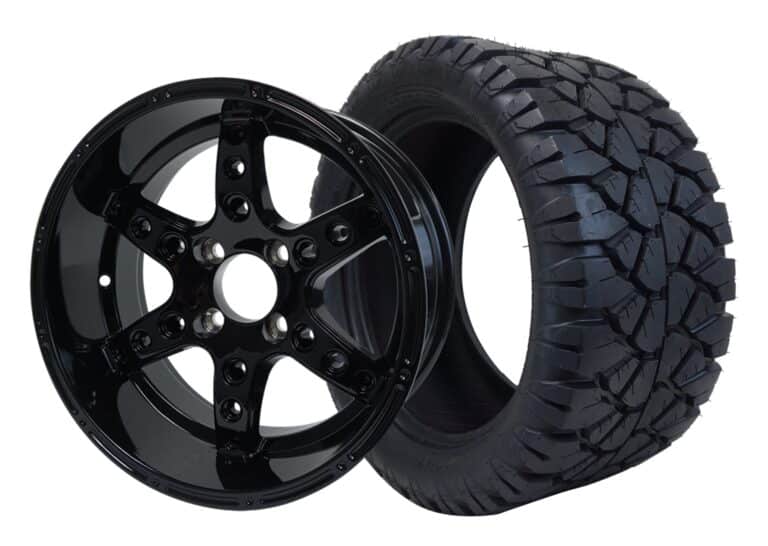 BNDL-TR1405-WH1403-CC0002-LN – SGC 14″ Night Stalker Glossy Black Wheel – Aluminum Alloy / STEELENG 23″x10.5″-14″ STINGER Hybrid AT Tire DOT approvedOut of Stock – Notify Me!