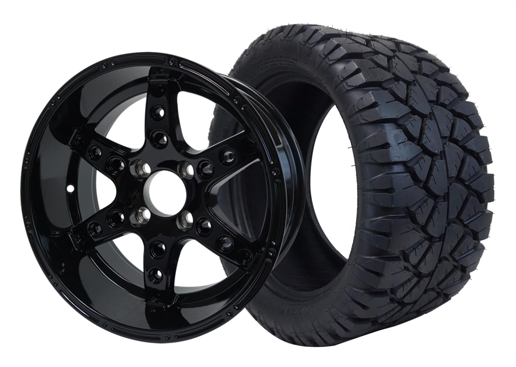 BNDL-TR1405-WH1410-CC0002-LN – SGC 14″ Terminator Glossy Black Wheel – Aluminum Alloy / STEELENG 23″x10.5″-14″ STINGER Hybrid AT Tire DOT approvedIn Stock
