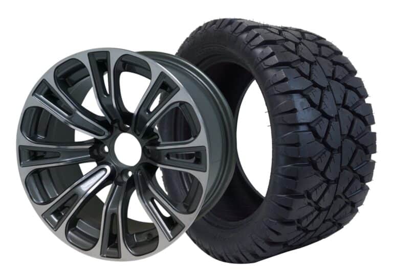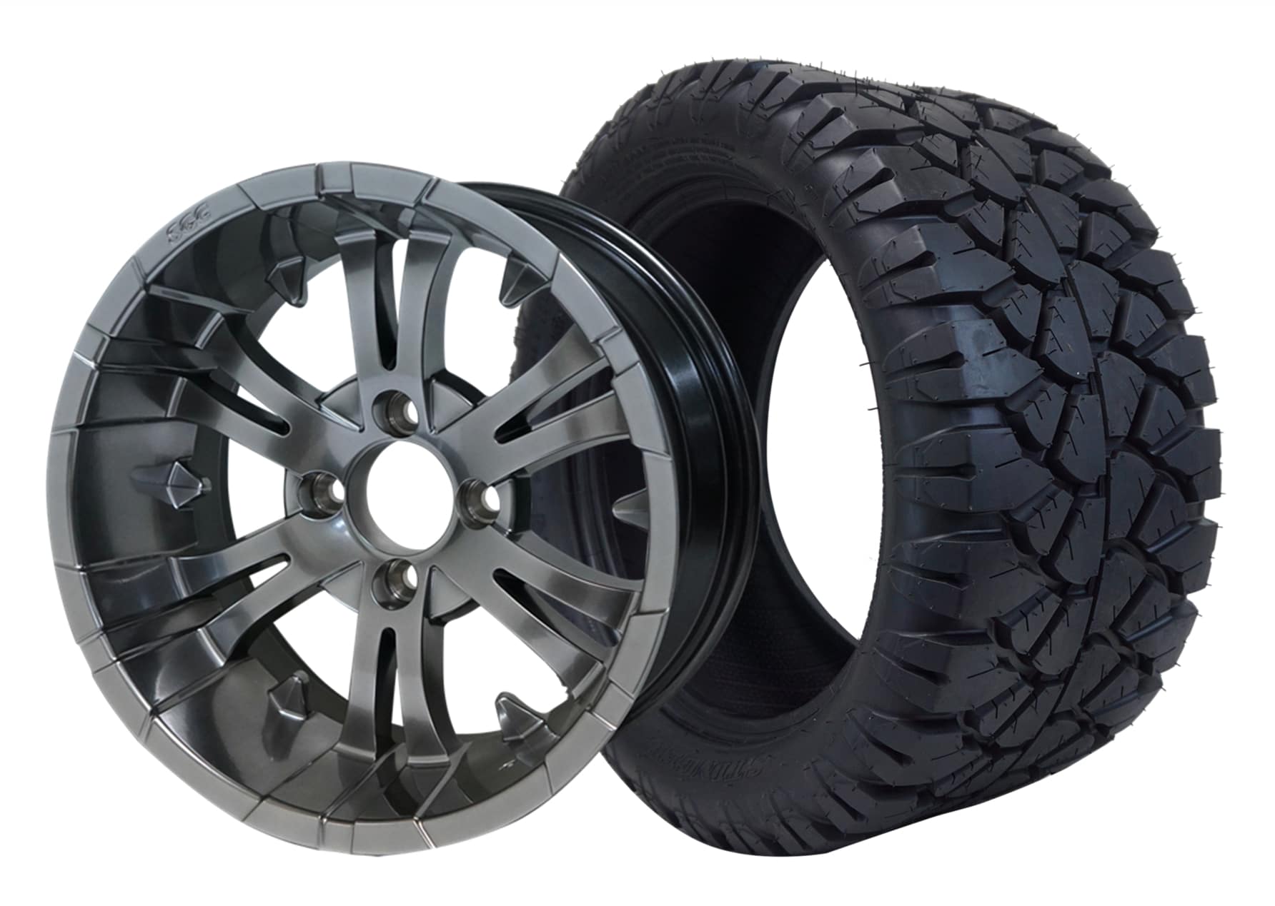 BNDL-TR1405-WH1417-CC0001-LN – SGC 14″ Vector Machined/Gunmetal Wheel – Aluminum Alloy / STEELENG 23″x10.5″-14″ STINGER Hybrid AT Tire DOT approvedIn Stock
