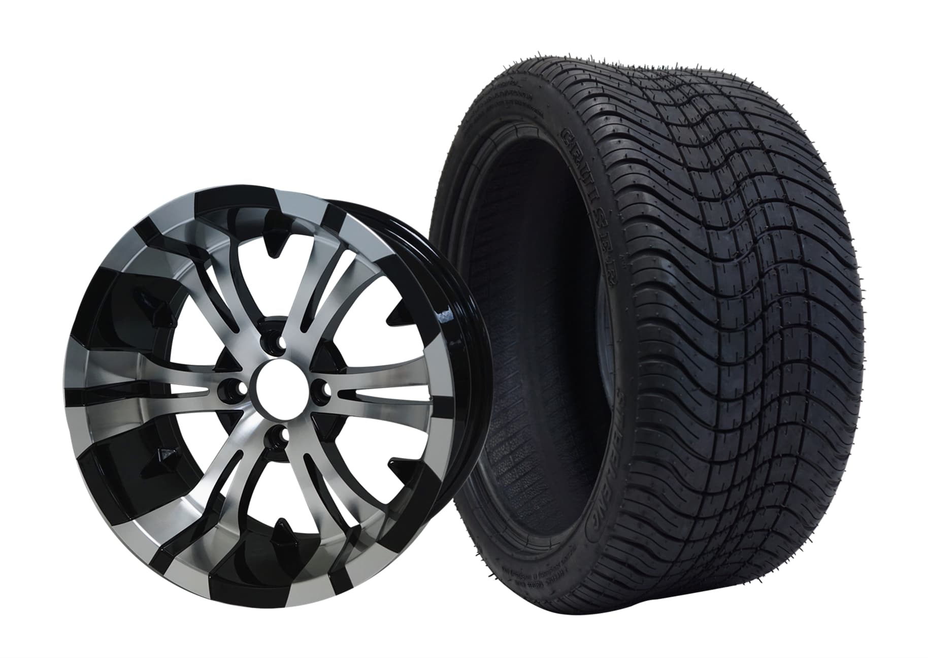 BNDL-TR1404-WH1413-LN0001-CC0001 – SGC 14″ Vampire Machined/Black Wheel – Aluminum Alloy / STEELENG 205/30-14 Low Profile Tire DOT approvedIn Stock