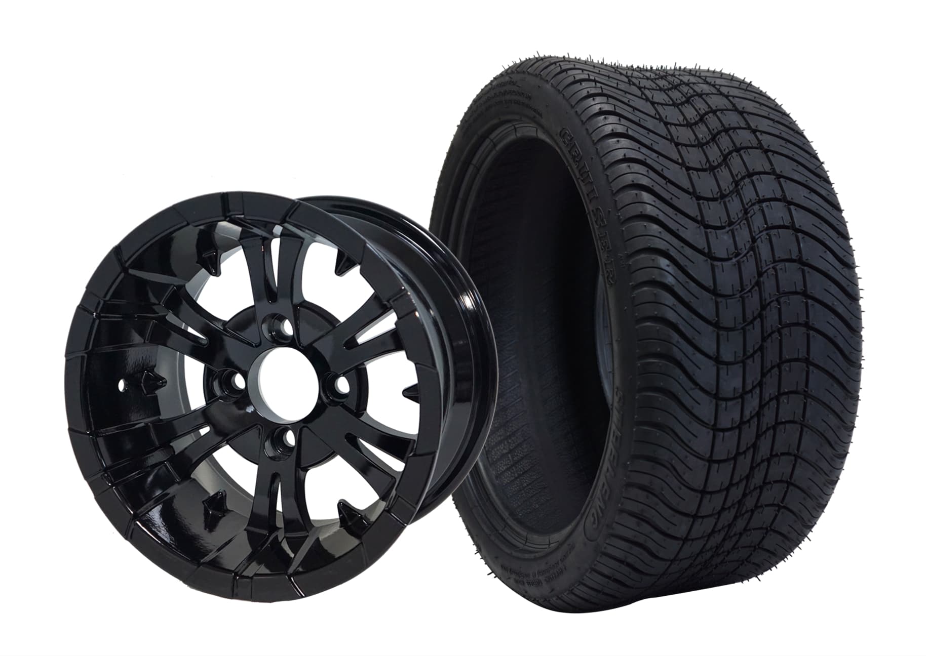 BNDL-TR1404-WH1414-LN0002-CC0002 – SGC 14″ Vampire Glossy Black Wheel – Aluminum Alloy / STEELENG 205/30-14 Low Profile Tire DOT approvedIn Stock