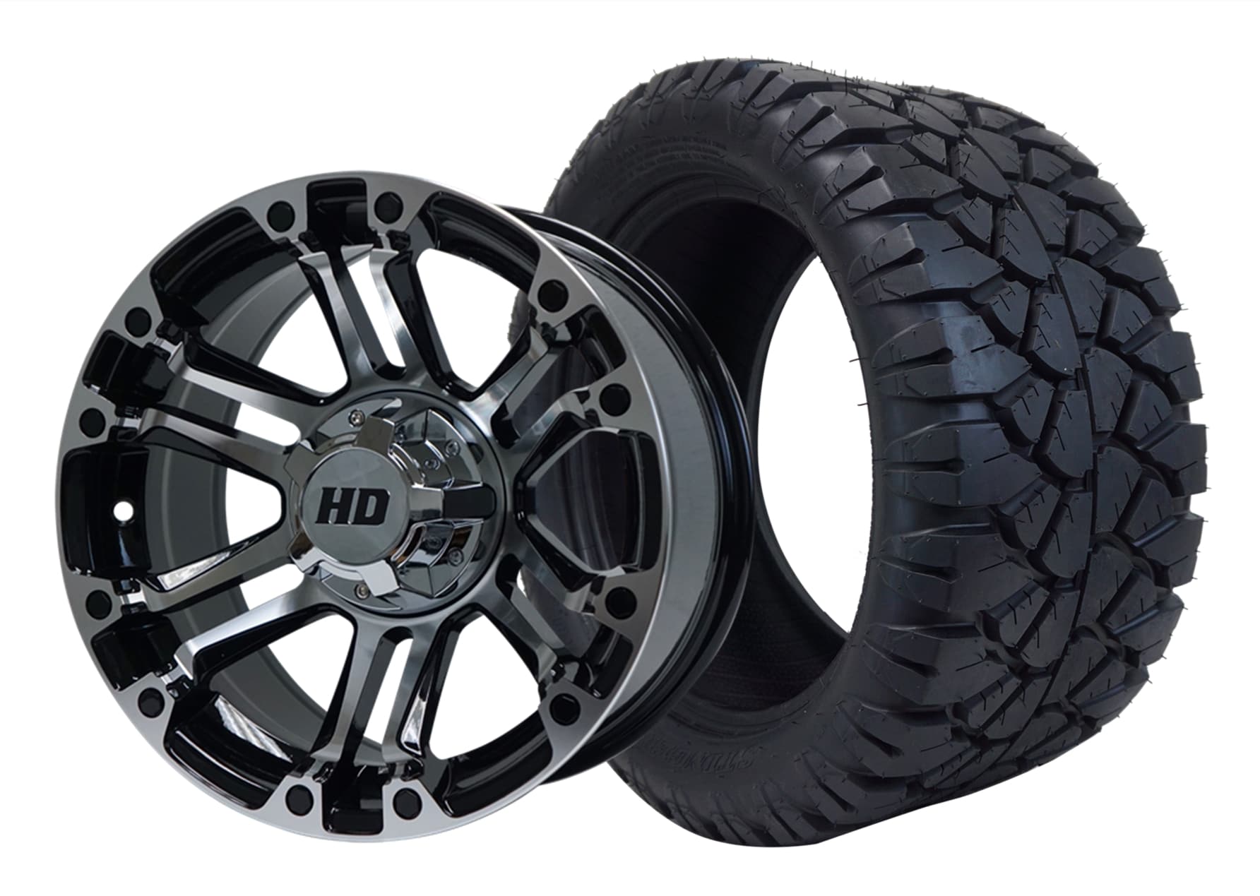 BNDL-TR1406-WH1406-CC0001-LN – SGC 14″ Tempest Machined/Black Wheel – Aluminum Alloy / STEELENG 23″x10.5″-14″ HELLFIRE Street Tire DOT approvedIn Stock