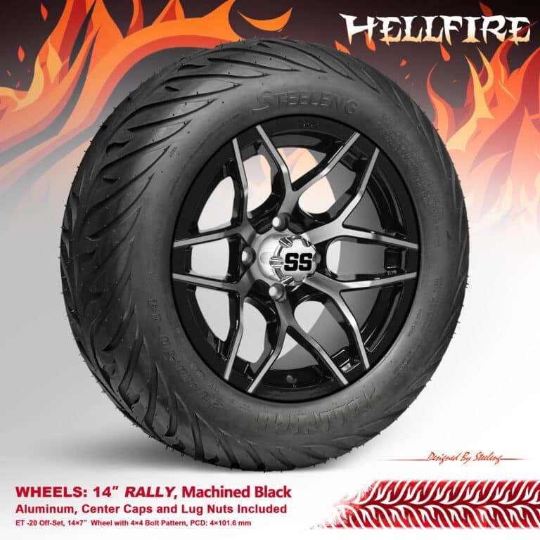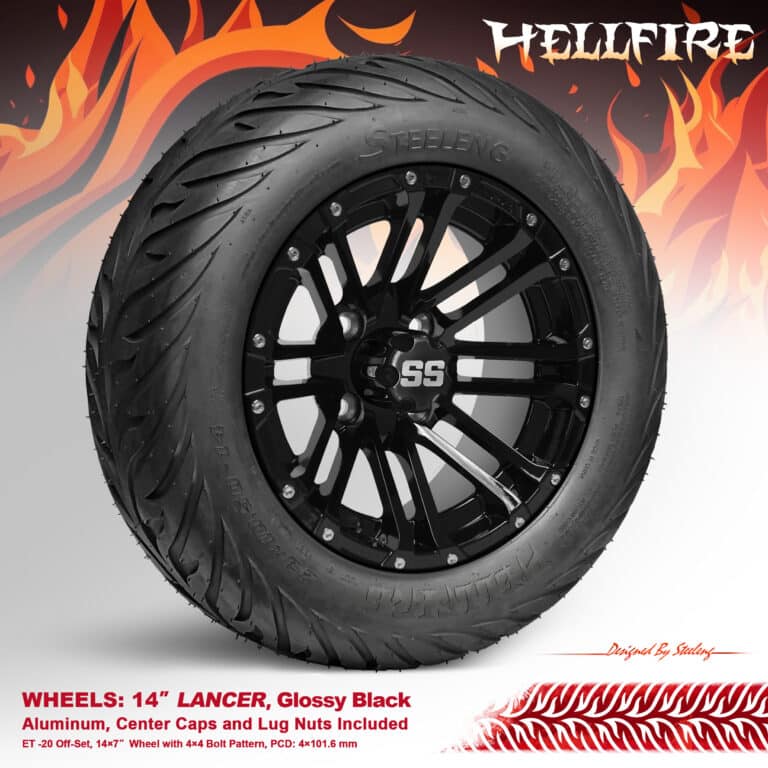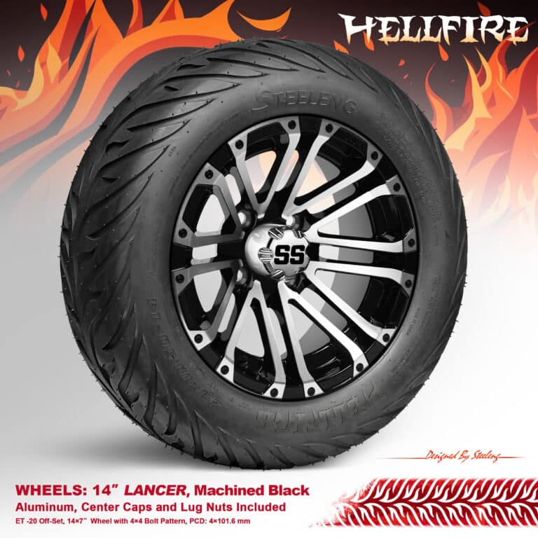 BNDL-TR1406-WH1424-CC0001-LN – SGC 14″ Lancer Machined/Black Wheel – Aluminum Alloy / STEELENG 23″x10.5″-14″ HELLFIRE Street Tire DOT approvedOut of Stock – Notify Me!