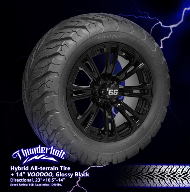 BNDL-TR1407-WH1421-CC0002-LN – SGC 14″ Voodoo Glossy Black Wheel – Aluminum Alloy / STEELENG 23″x10.5″-14″ Thunder Bolt Hybrid TireOut of Stock – Notify Me!