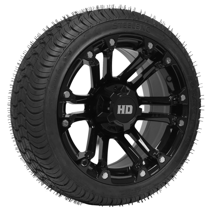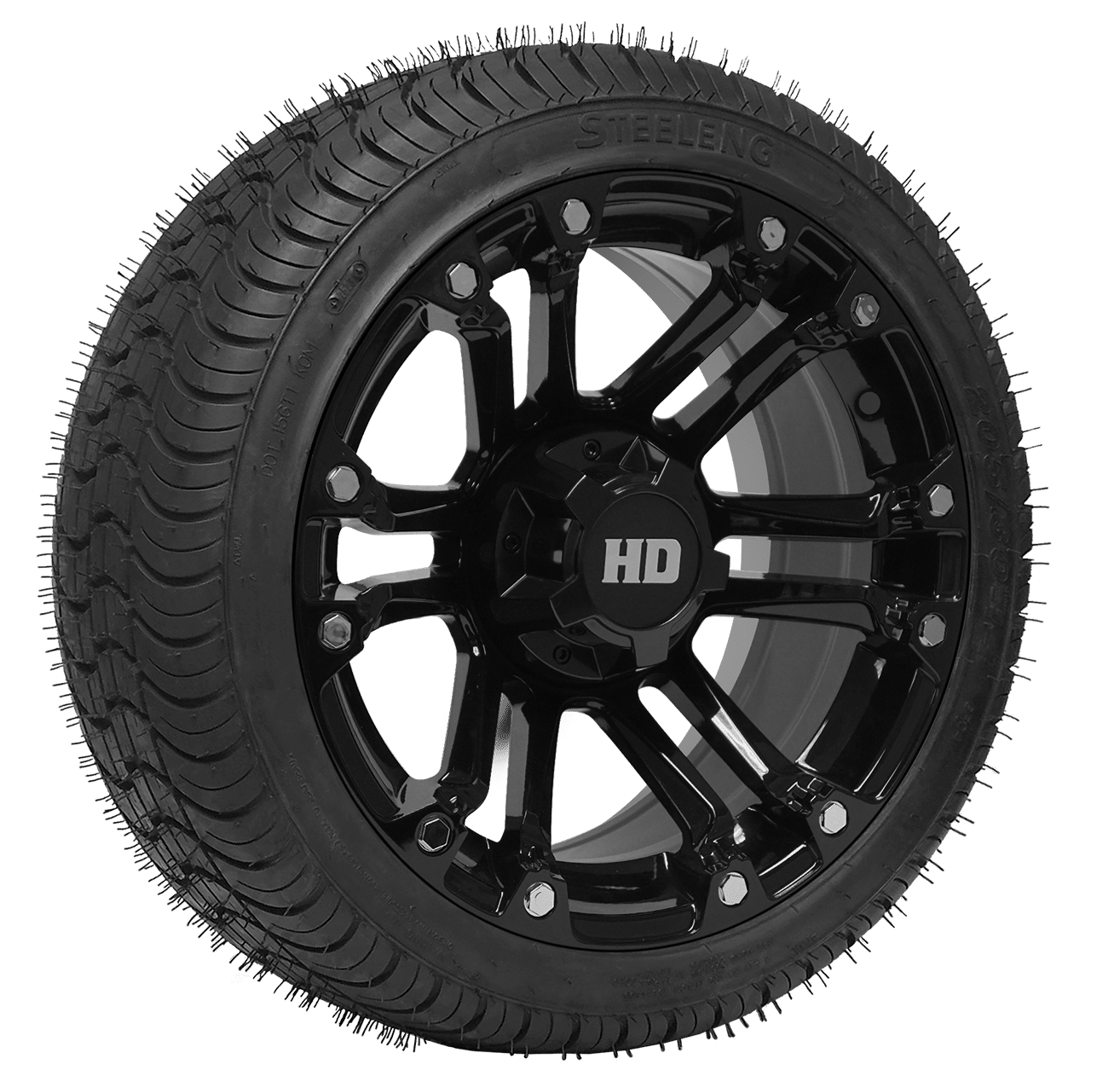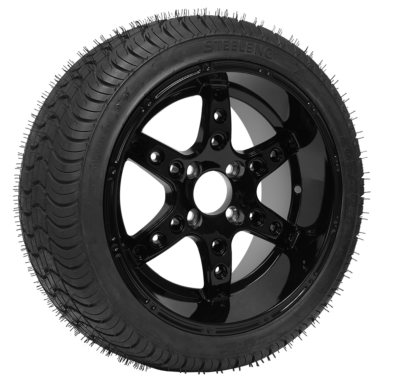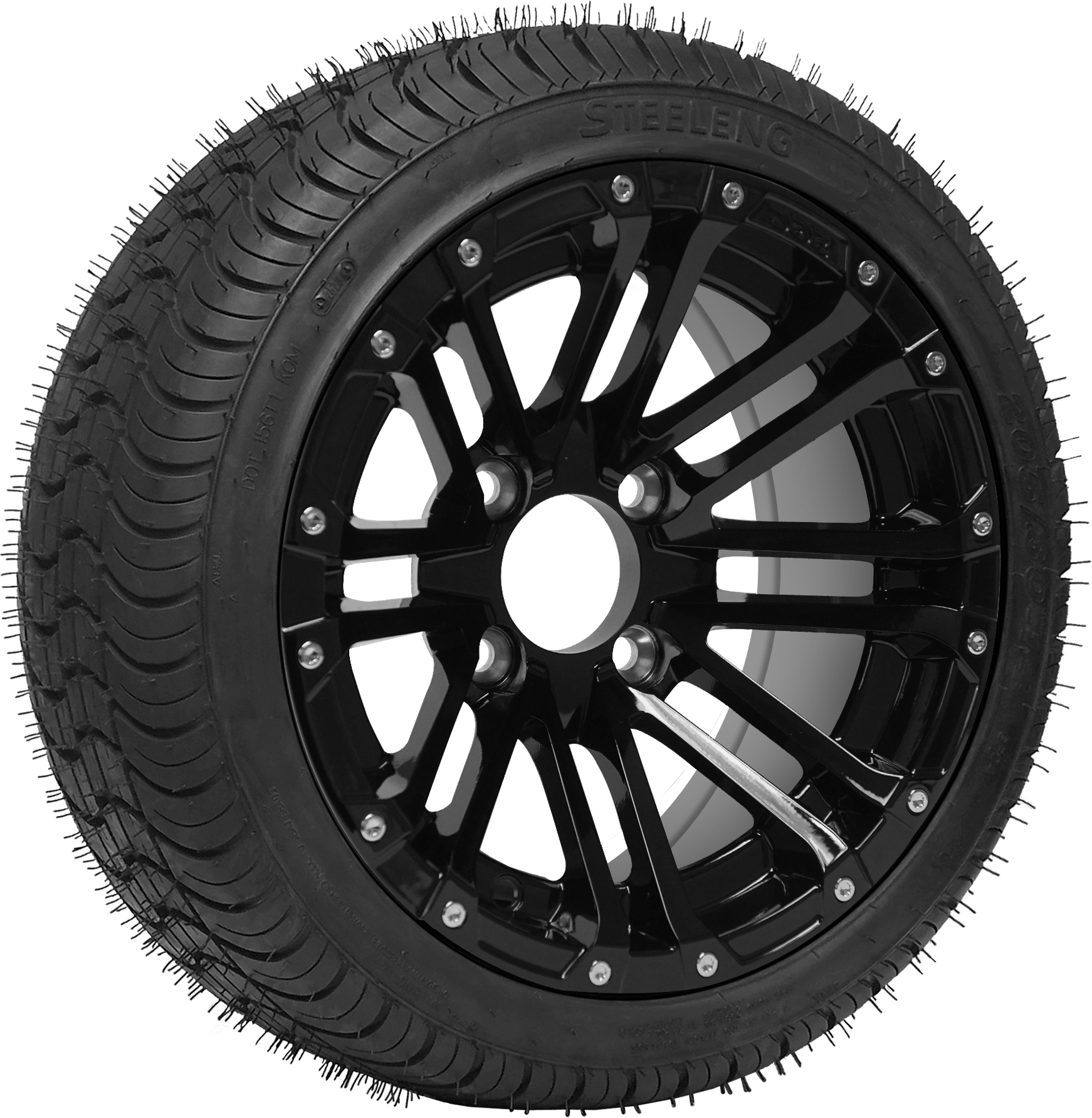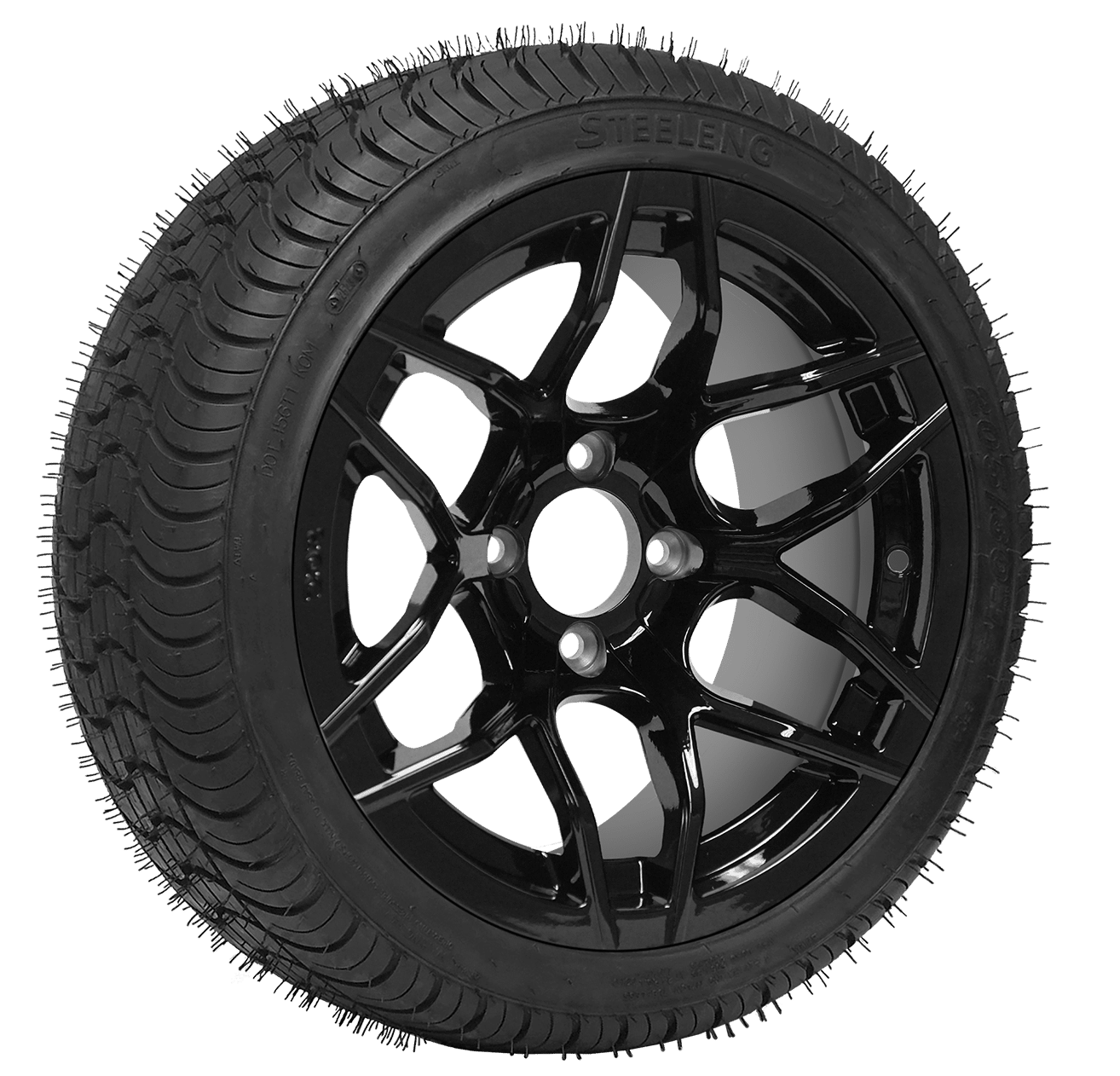 BNDL-TR1480-WH1420-CC0002-LN – SGC 14″ Venom Glossy Black Wheel – Aluminum Alloy / STEELENG 205/30-14 QH Low Profile Tire DOT approved