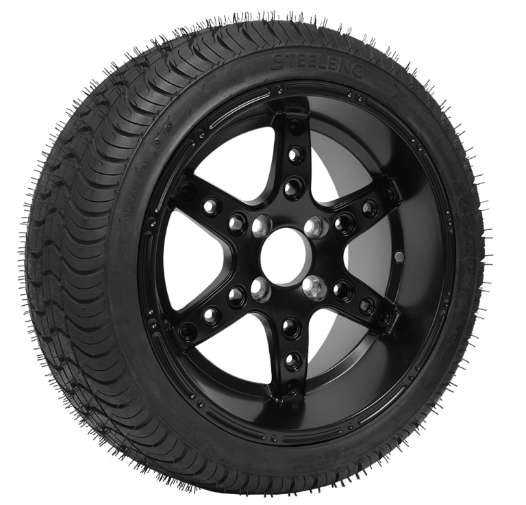 BNDL-TR1480-WH1412-CC0002-LN – SGC 14″ Turbine Matte Black Wheel – Aluminum Alloy / STEELENG 205/30-14 QH Low Profile Tire DOT approved