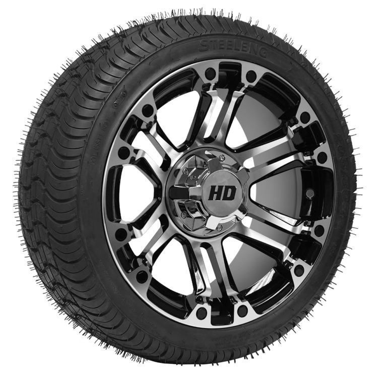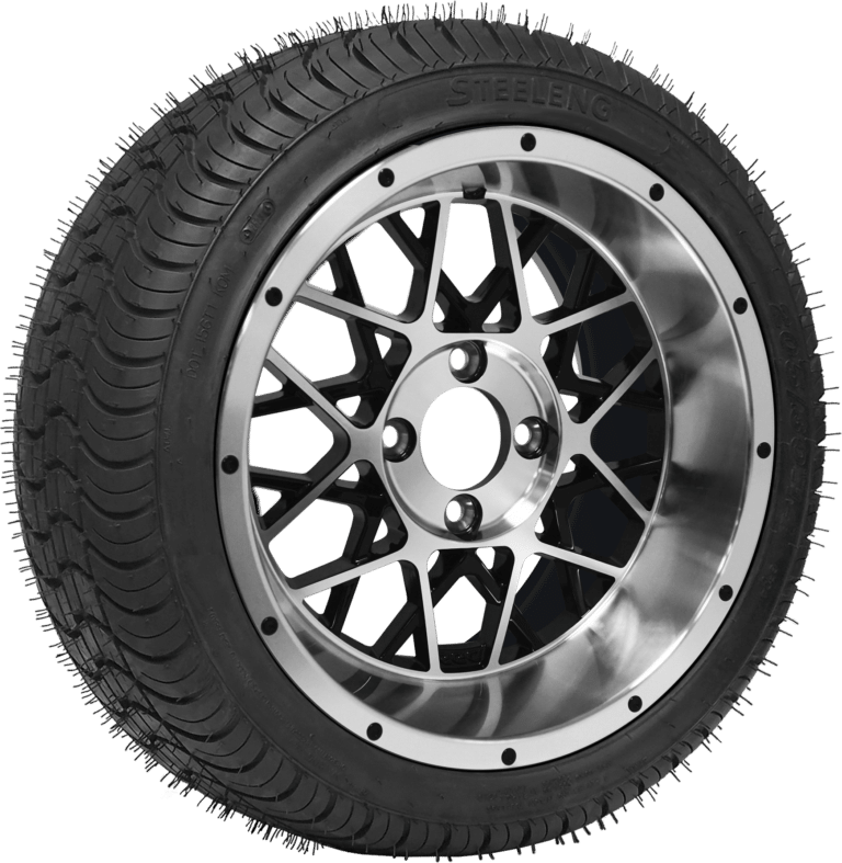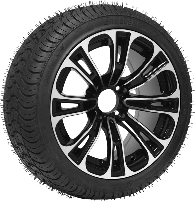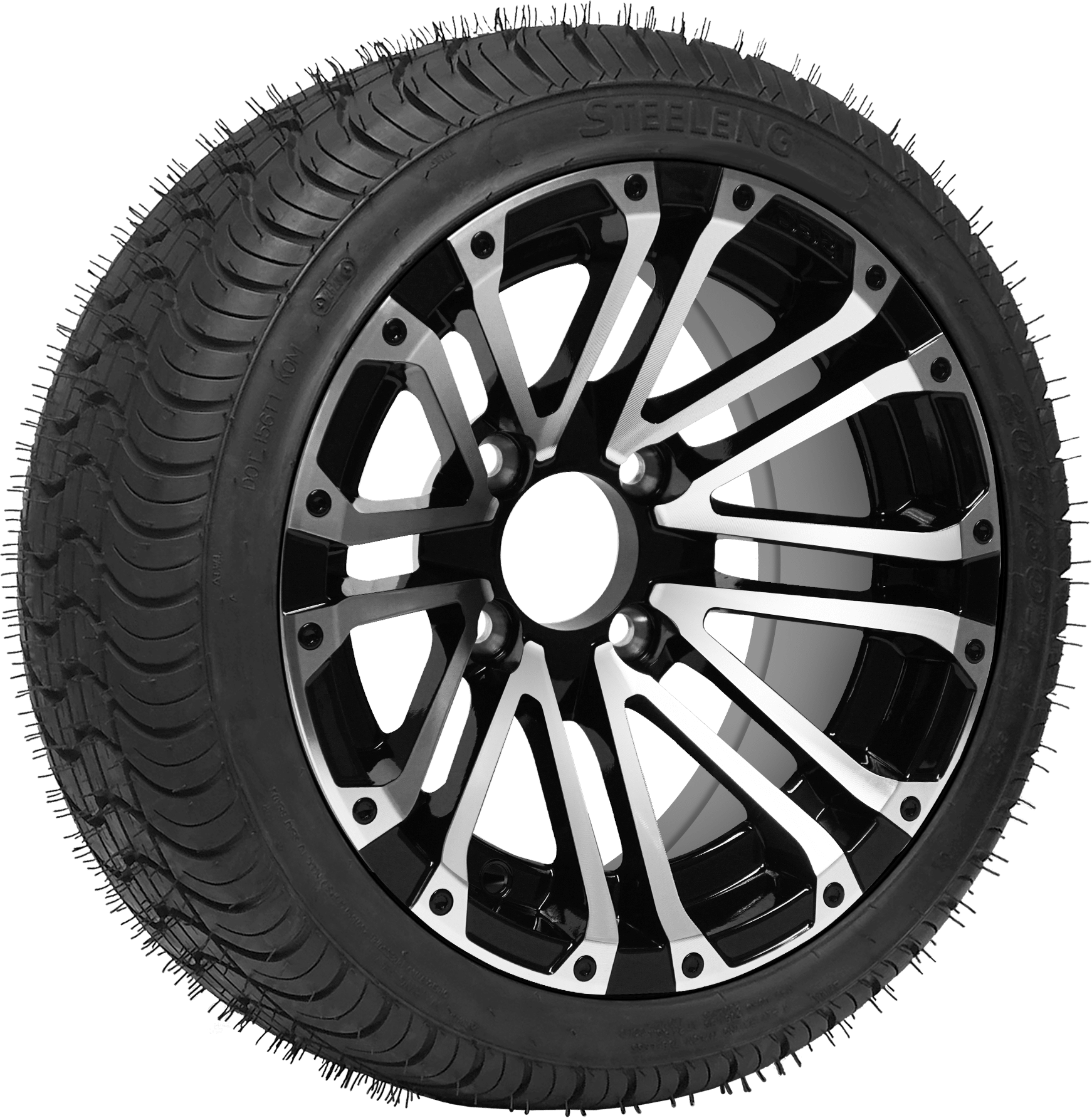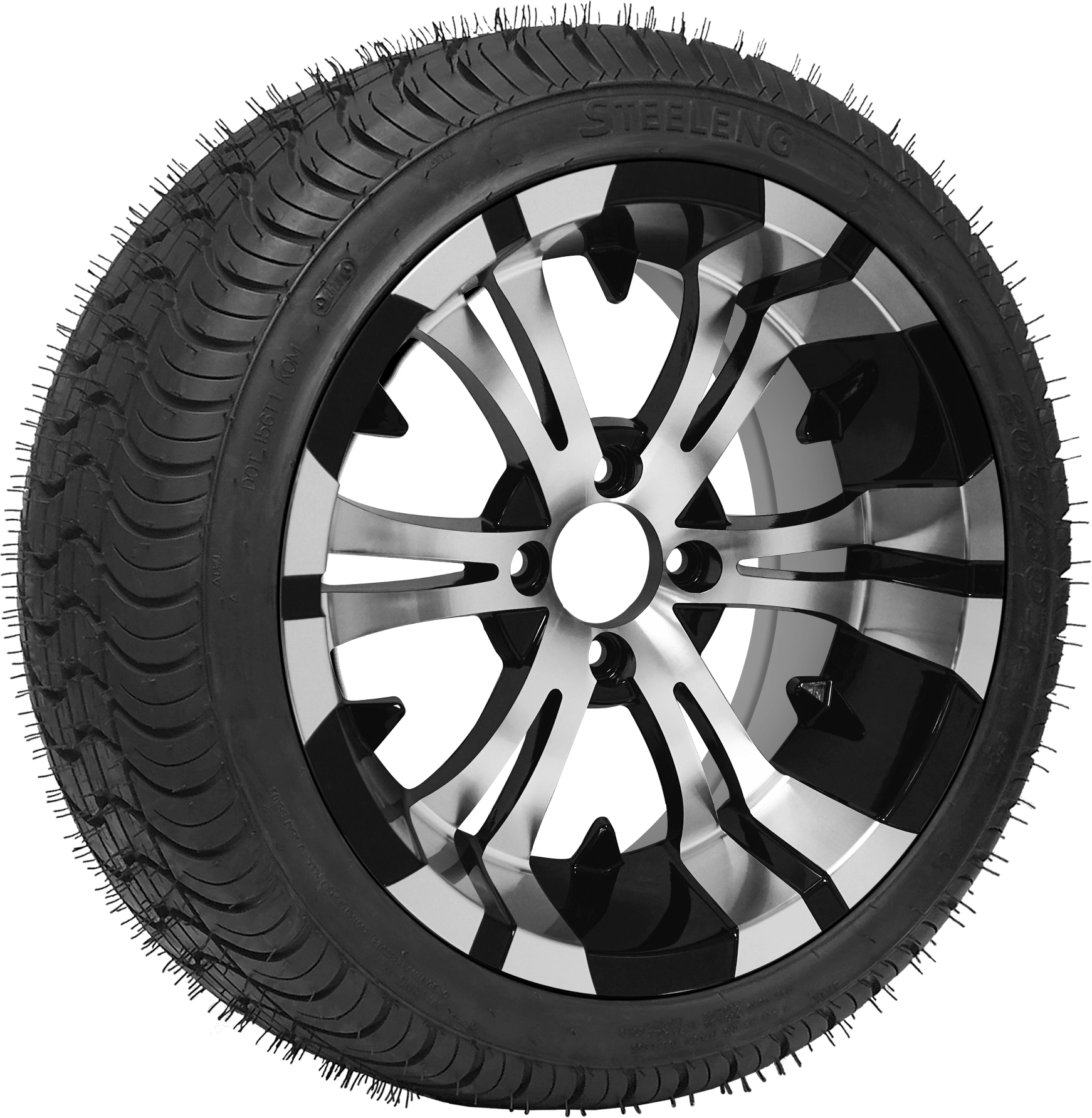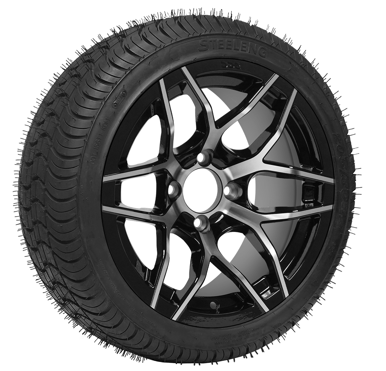 BNDL-TR1480-WH1419-CC0001-LN – SGC 14″ Venom Machined/Black Wheel – Aluminum Alloy / STEELENG 205/30-14 QH Low Profile Tire DOT approved