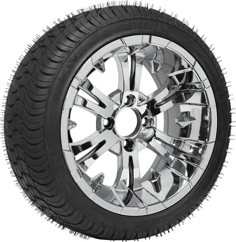 BNDL-TR1480-WH1415-CC0001-LN – SGC 14″ Vampire Chrome Wheel – Aluminum Alloy / STEELENG 205/30-14 QH Low Profile Tire DOT approved