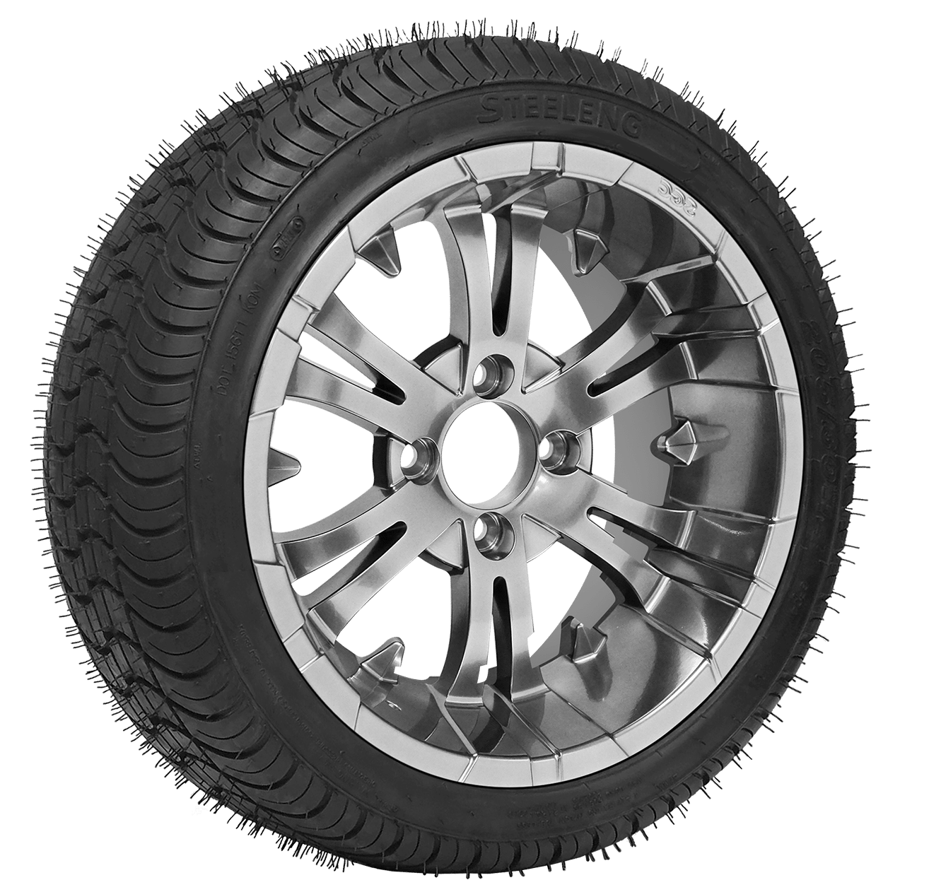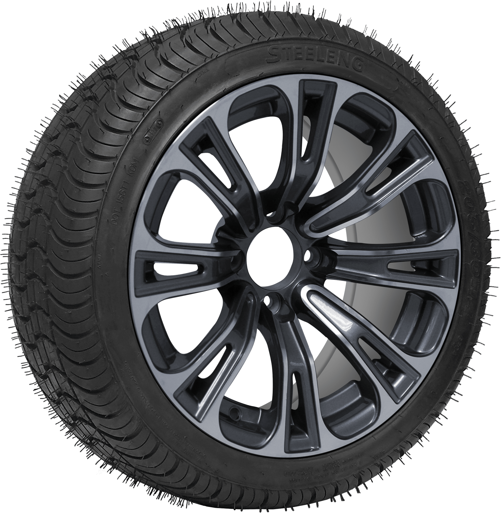 BNDL-TR1480-WH1417-CC0001-LN – SGC 14″ Vector Machined/Gunmetal Wheel – Aluminum Alloy / STEELENG 205/30-14 QH Low Profile Tire DOT approved