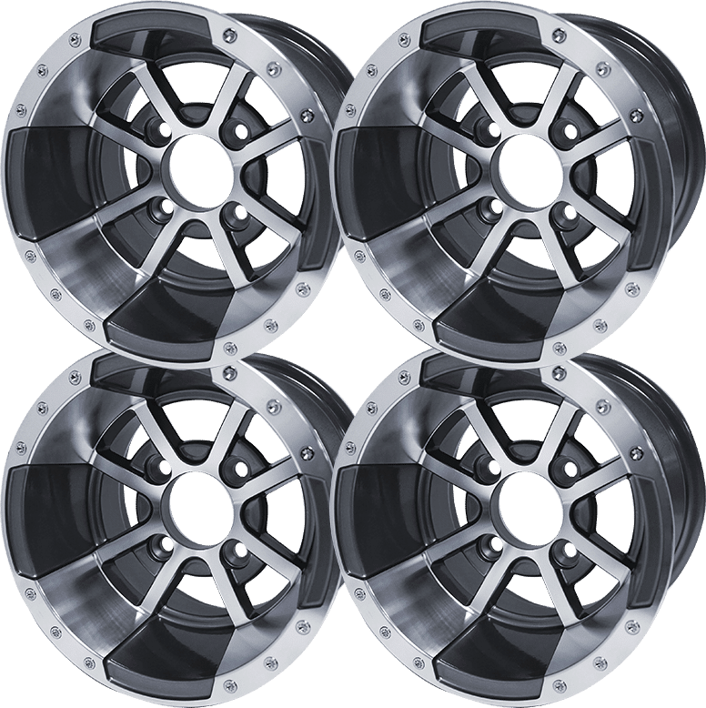 BNDL-WH1028 – SGC 10″ Medusa Machined/Gunmetal Wheel – Aluminum Alloy (SET OF 4)Out of Stock – Notify Me!