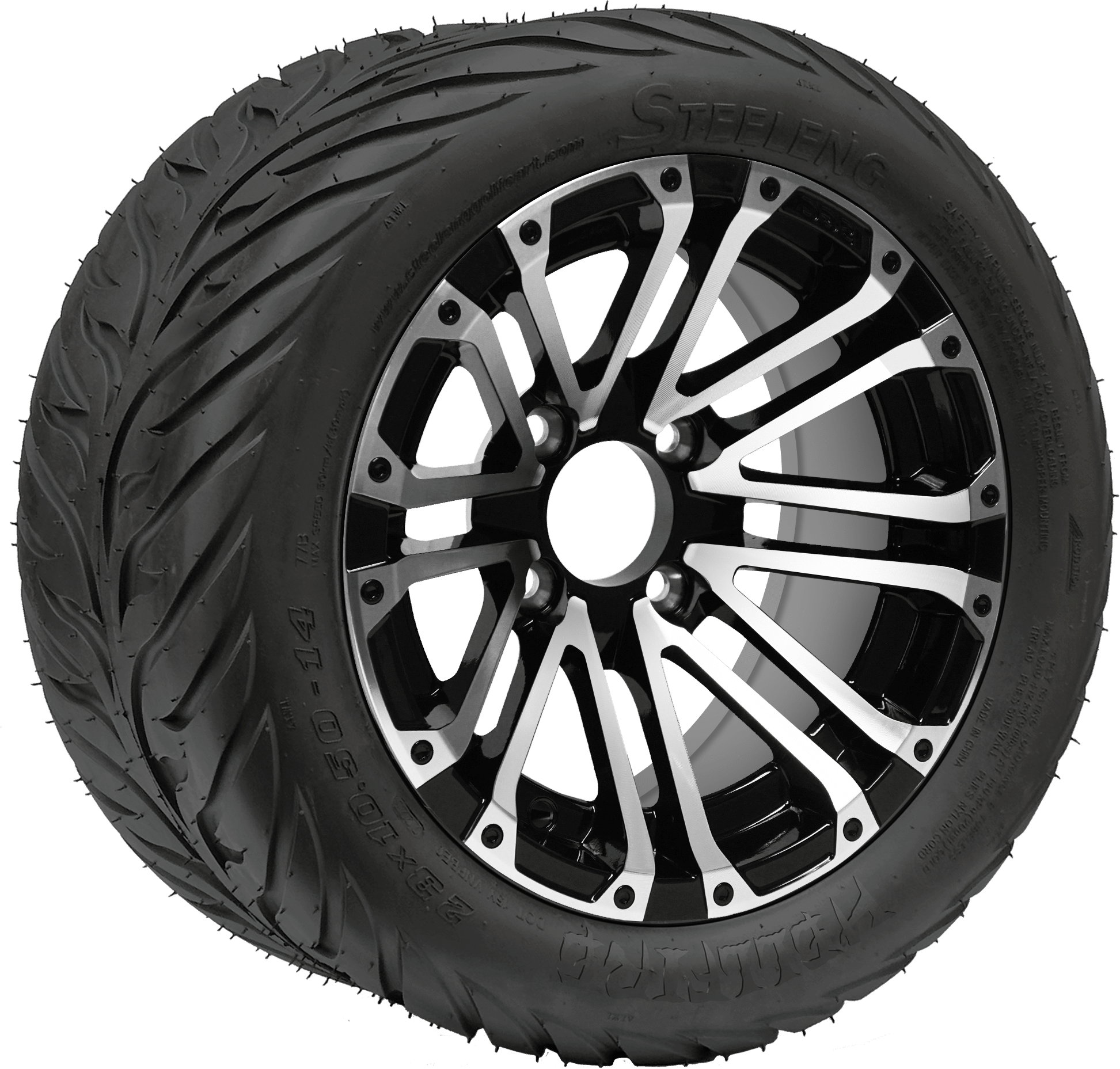 BNDL-TR1406-WH1424-CC0001-LN – SGC 14″ Lancer Machined/Black Wheel – Aluminum Alloy / STEELENG 23″x10.5″-14″ HELLFIRE Street Tire DOT approved